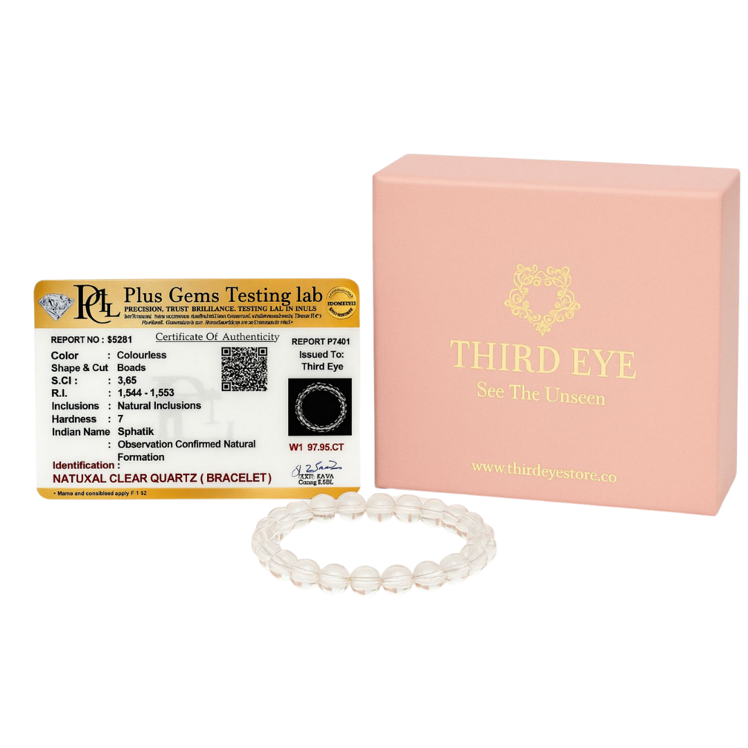Embrace divine tranquility and spiritual clarity with our certified Natural Clear Quartz Bracelet, known traditionally as Sphatik. Revered for its connection to Lord Shiva, Sphatik is a symbol of purity and is celebrated for its ability to calm the mind and purify the soul.