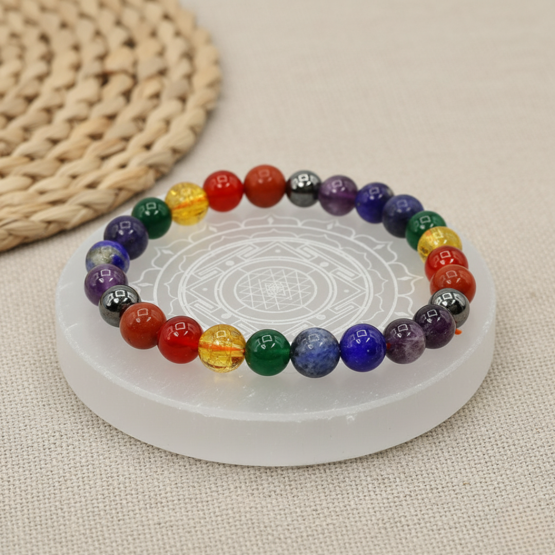 Yeh bracelet aapke saaton chakras (Root se Crown tak) ko align aur balance karta hai. Yeh aapki life se energy blockages ko hatata hai, jisse aap physical, emotional, aur spiritual roop se behtar mehsoos karte hain.